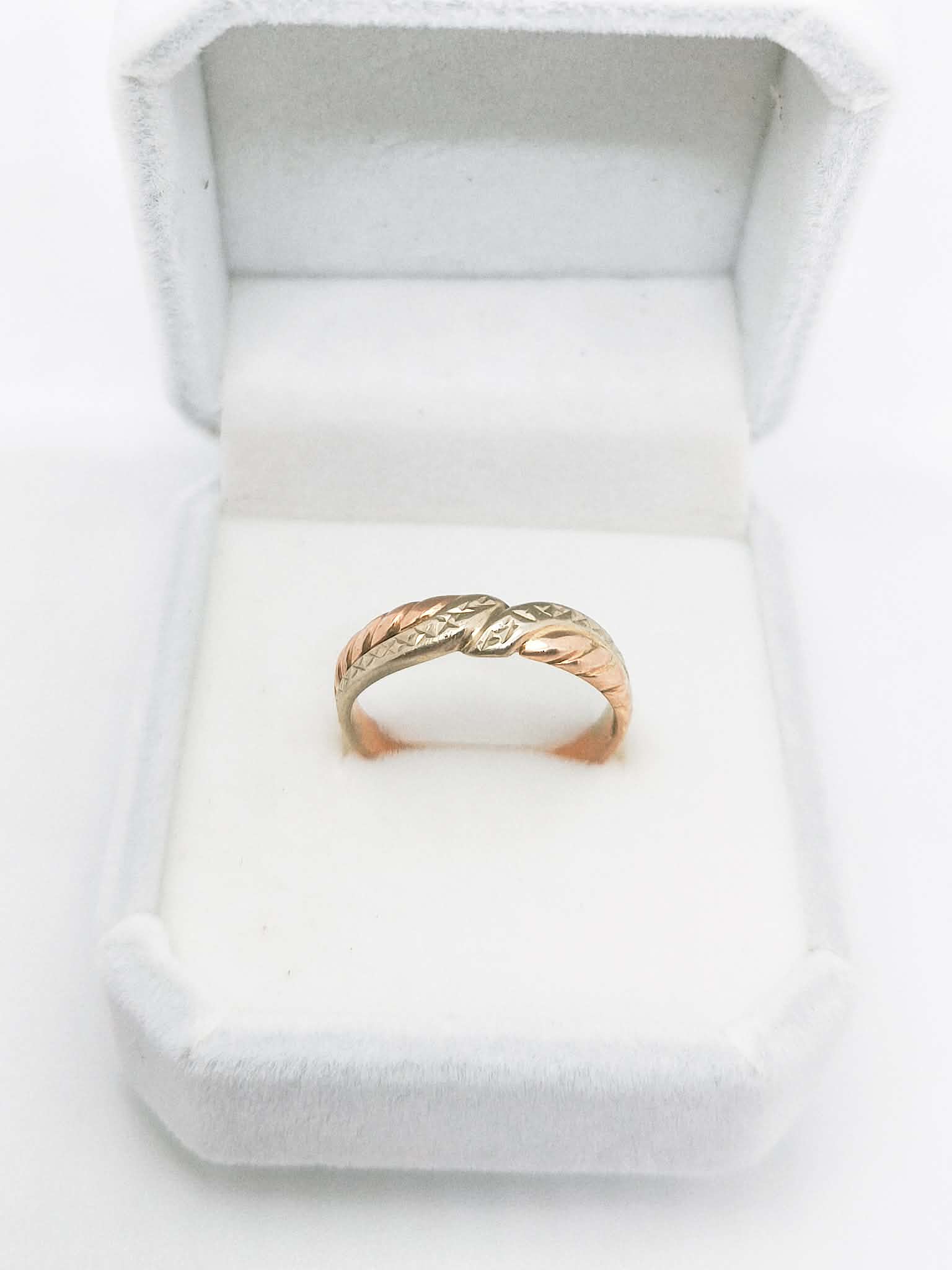 Ilus ja omapärane roosa/valgest kullast 585° sõrmus.
