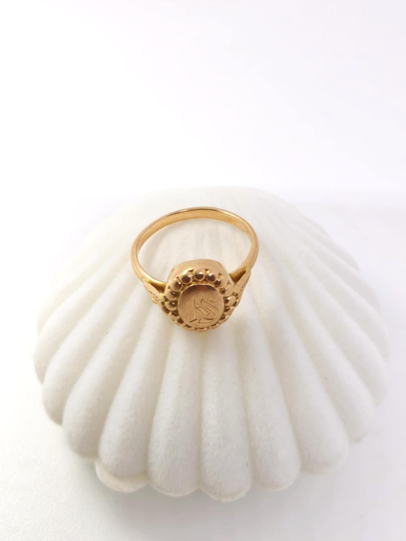Kullast 583°korralik graveeringuga sõrmus.