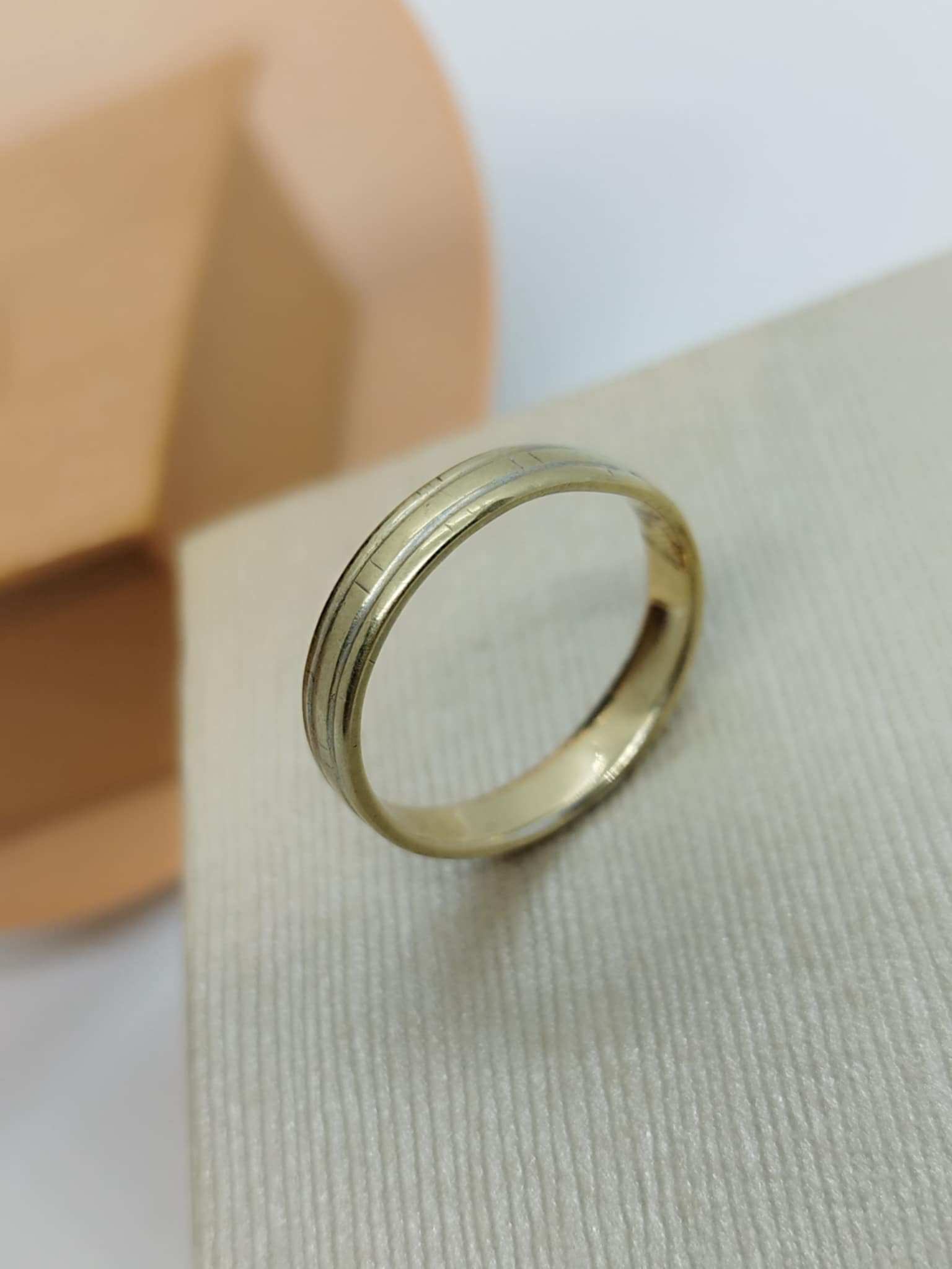 Kollasest kullast graveeringuga abielusõrmus.Proov peal puudub,määratud vastava happega.